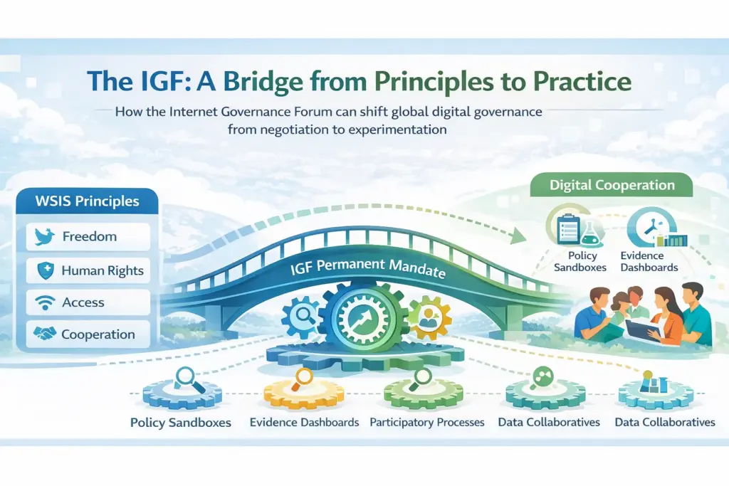 This combination of permanence and ambiguity creates a rare opening. Unlike formal negotiation bodies, the IGF can prototype without requiring consensus on final outcomes.